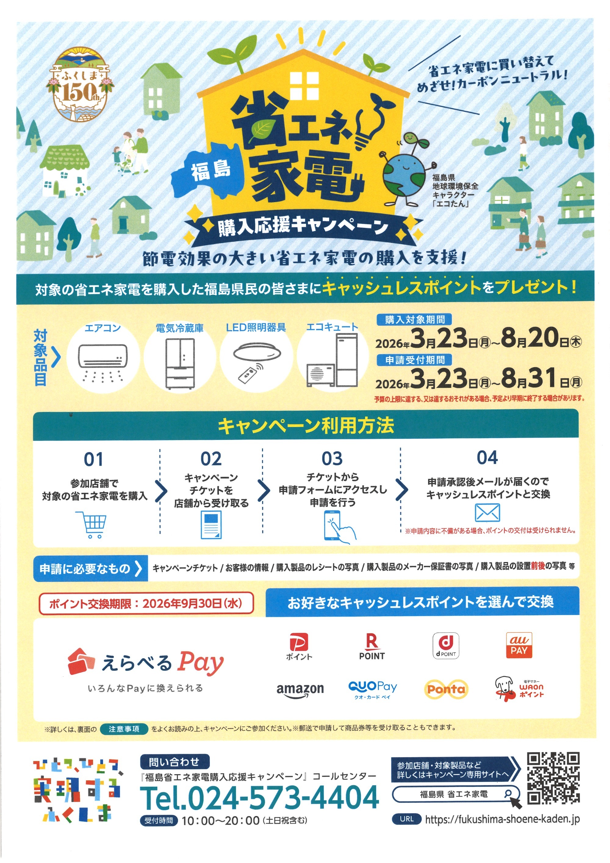 福島県では節電効果の高い省エネ家電の購入を支援する「福島省エネ家電購入応援キャンペーン」を実施します。